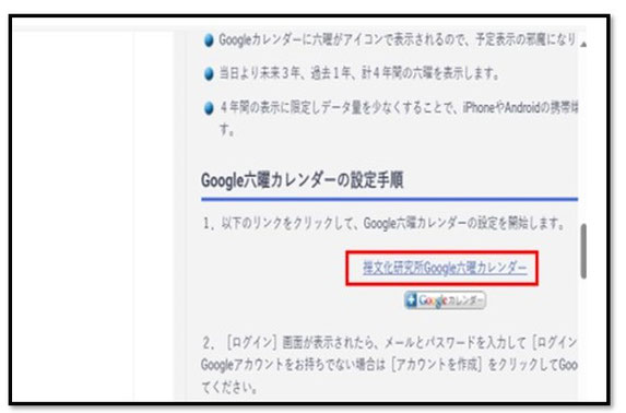 4・「以下のリンクをクリックして」の下の「禅文化研究所Google六曜カレンダー」をクリックします。