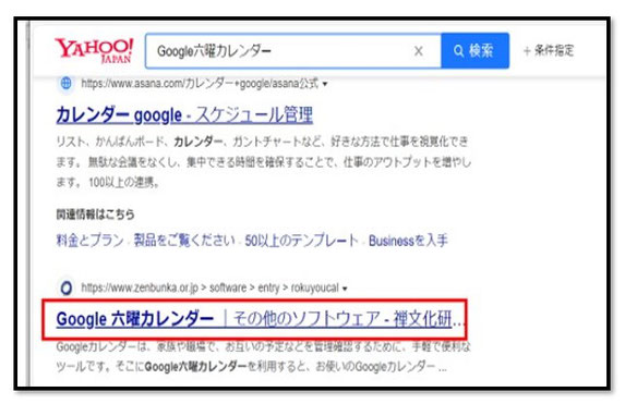 2・検索結果が表示されます。「Googleカレンダー その他のソフトウェア・禅文化研」をクリックします。