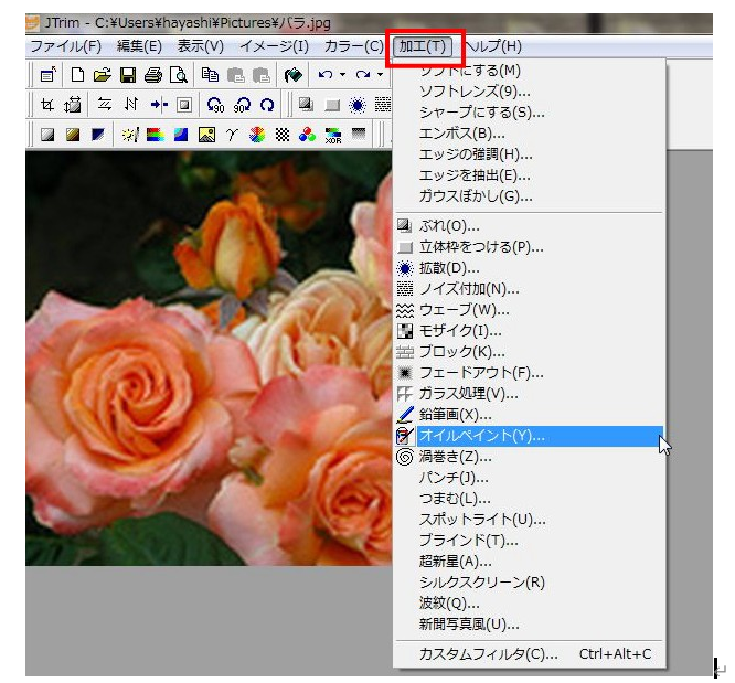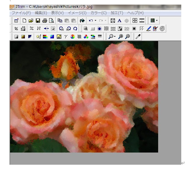画像編集編集ソフトJtrimでは画像に様々な加工を加えることができます。今回は油絵風に加工してみましょう。