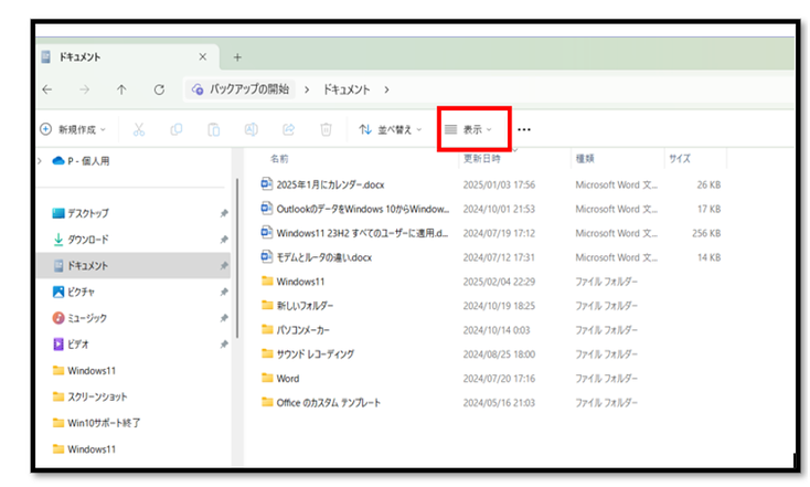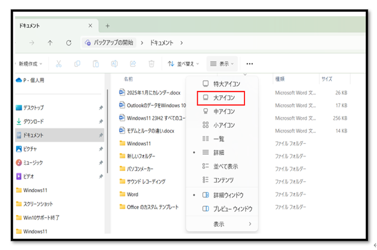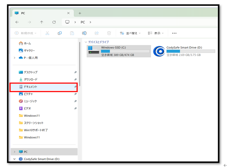 2・表示された画面の左側から「ドキュメント」をクリックします。