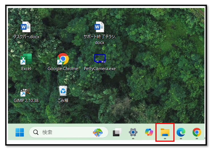 1・タスクバーのエクスプローラアイコンをクリックします。